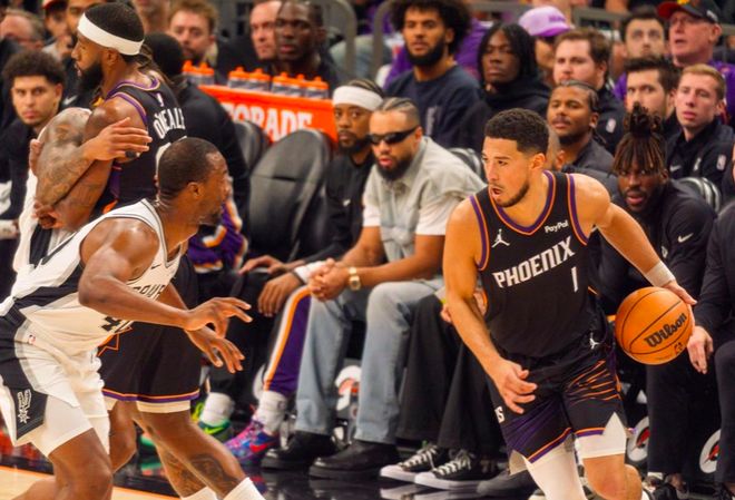 赛季首败!文班亚马9分6失误罕见迷失,布克轰28+13打爆马刺