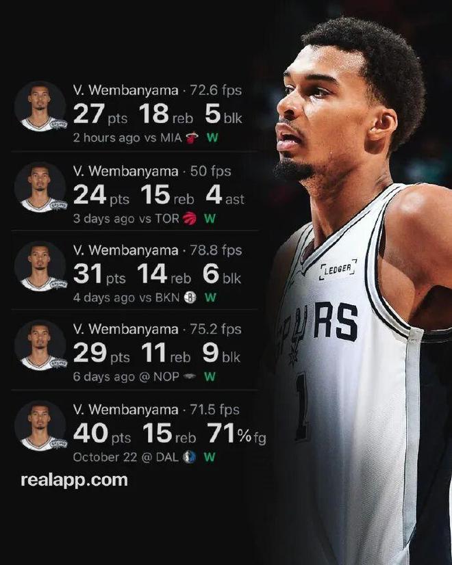 2025年10月31日 马刺灭火5连胜&队史最佳开局 文班27+18+6+5帽 阿德巴约31+10